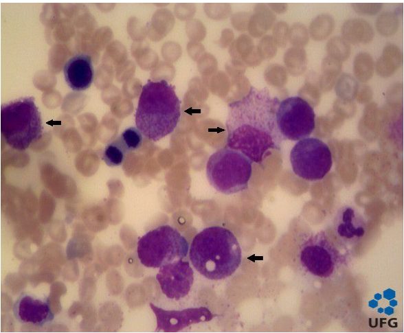 Imagem: LLA https://hematologia.farmacia.ufg.br/p/7148-leucemia-linfoide-aguda-sangue-periferico